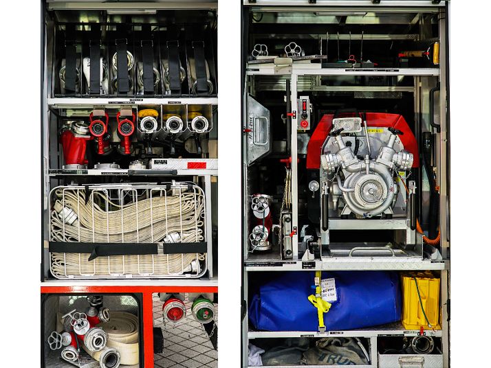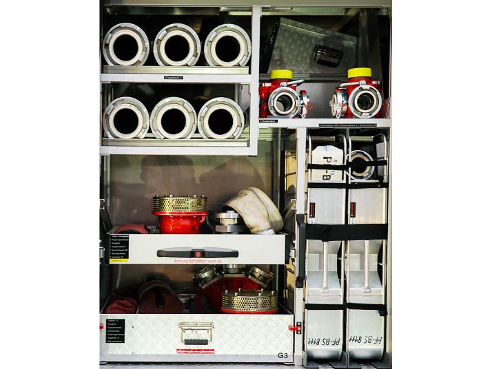 - 600 Meter B-Druckschläuche, davon 300 Meter zusammengekuppelt und während der Fahrt verlegbar.